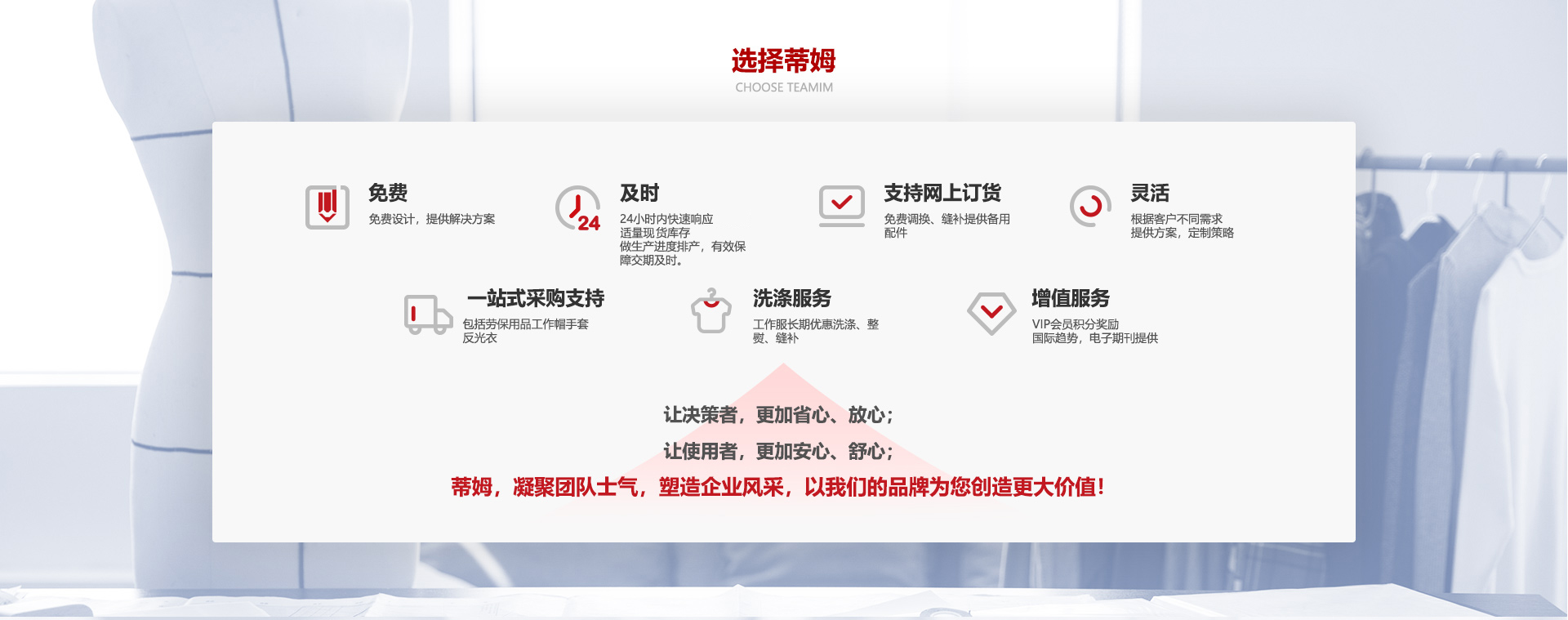 蒂姆服裝創(chuàng)立于1999年,已有20多年的歷史,集服裝服飾設(shè)計(jì)研發(fā)、生產(chǎn)制作、產(chǎn)品銷售+服務(wù)、技術(shù)提案、一站式采購支持于一體的國內(nèi)為數(shù)不多的具備全價(jià)值鏈的專業(yè)制服供應(yīng)商。公司嚴(yán)格按照ISO9001質(zhì)量管理體系標(biāo)準(zhǔn)及五星級(jí)售后服務(wù)體系執(zhí)行,專注于研究職業(yè)裝材料的健康性、舒適性、時(shí)尚性、安全性、科技性。塑造企業(yè)形象,展現(xiàn)企業(yè)風(fēng)彩。